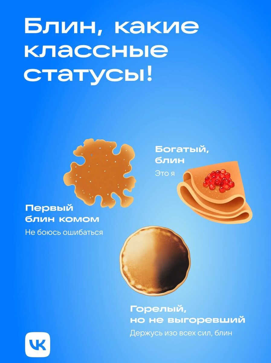 Блин, а мы в ВК смешные статусы выпустили 🥞 а вы, блин, все пропускаете!