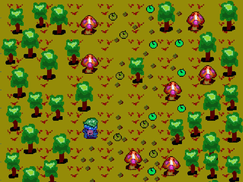 Пиксель арт на сегодня по мотивам видеоигры Robotrek для игровой приставки Супер Нинтендо. Это просто вау! Потому что и по Роботреку есть игрушка на Супер Нинтенду! Вот супер! И там даже по идее роботы какие то должны быть. Хотя все пока выглядит как фэнтези. Очередной классный карик! 16 бит сила! Не ну должны же там быть роботы! А так ролевая игра типа Последней Фнатазии. А это мой рисунок по мотивам Robotrek (Snes). Аллея яблонь и грибов. Это волшебное место. Ну наконец-то! Ты здесь. А тут красиво. Все такое цветное. Грибы. Деревья. Прямо как осень. Или в сказке Алиса в стране чудес. Большие грибы. Такие растут только здесь. Ты на верном пути. У тебя за спиной сумка. И там много полезных вещей. Даже здесь можно будет что-то собрать. И взять с собой. Осталось найти только чудо гриб и собрать его. И пойти домой. К вечеру можно все успеть. Главное только далеко не забредать. Тут тихо. И ветерок иногда трогает деревья. Как раз самое время достать из сумки яблоко. И скушать его. Здесь тож