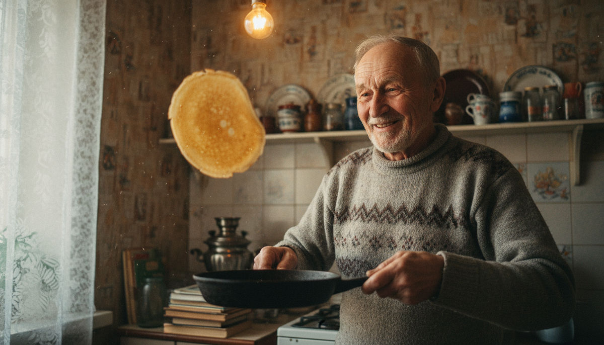 Спойлер: через два часа наша кухня напоминала зону боевых действий, а традиционный праздник обернулся полным провалом. Грустное осознание: настоящий праздник подменили шоу, а мы разучились создавать традиции своими руками. Мы честно пытались сделать всё по правилам. Жена нашла в сети «настоящий старинный рецепт на дрожжах». Поставили опару с вечера, утром замесили тесто. Разогрели сковородку. Первый блин получился толстым и сырым. Второй прилип намертво. Третий порвался, пока я пытался его перевернуть. К обеду перед нами возвышалась гора резиновых комков.