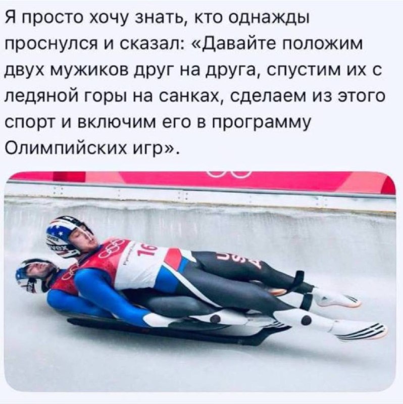 Просто один из них шёл по горке и не успел отойти, второй помчал на санях, подсек его и они дальше поехали вместе 🛷