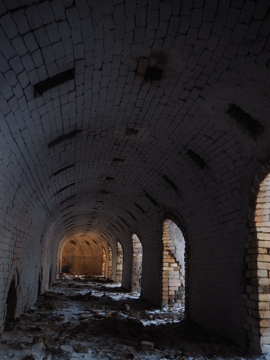 Одного из... И нет, это не катакомбы форта Боярд у Атлантического побережья Франции в проливе Антьош, это печь Гофмана кирпичного завода в Новоузенске 🏭 Одна из последних сохранившихся в руинированном состоянии печь непрерывного горения со сложнейшим механизмом. Кольцевая печь Гофмана — это промышленный организм, где огонь постоянно двигался по кругу. Работало это так: Сырой кирпич загружали с одной стороны, а готовый выгружали — с другой. Огонь не стоял на месте, а "гулял" вслед за воздухом. В одной части печи только что обожженный кирпич остывал и отдавал тепло. Этот раскаленный воздух по специальным каналам перегоняли в ту часть, где стоял сырец, подогревая его. А в самой горячей зоне, в центре круговорота, при температуре под 1000°C шёл обжиг. Уголь засыпали прямо через отверстия в своде. Никакого простоя. Тепло от остывающего кирпича не улетало в трубу, а сушило новые партии. Гениальная экономия XIX века, позволявшая выдавать миллионы штук кирпича в год. И что самое интересн