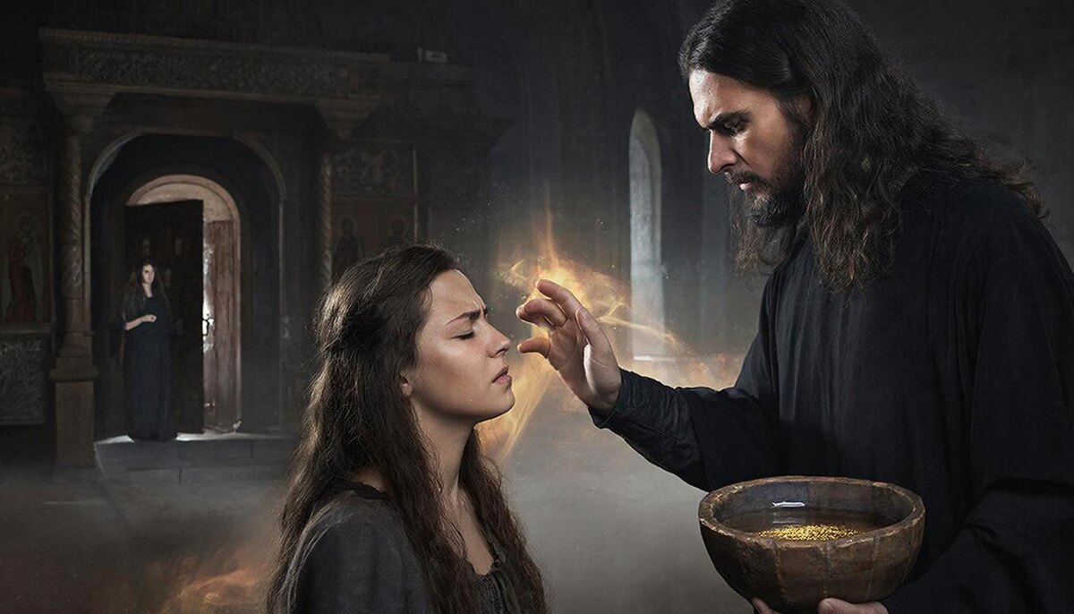 Она сидела у окна. Февраль 2001 года. За стеклом морозная тишина. Снег лежал на крышах ровным белым покрывалом. Улицы пустые. Город спал. Она не спала. Сидела и вспоминала. Не его лицо. Не его голос. Не их встречи. Она вспоминала себя. Ту, что была до. И ту, что стала после. Он уехал две недели назад. Без предупреждения. Без прощания. Просто — исчез. Она пришла в храм. Его не было. Никто не знал, куда. Никто не говорил. И тогда началось другое. Это была та самая ночь, когда ее Духовный Отец уехал из монастыря. В тот вечер Она, как обычно, легла спать и быстро уснула. Ночью ей приснился «сон». Храм. Тот самый. Но — другой. Стены те же. Иконы те же. Но воздух — другой. Густой. И — Он. Мужчина в чёрной ризе. Выше среднего. Худощавый. Длинные тёмные волосы по плечам. Лицо — утончённое, как у древней иконы. Глаза — не видела. Но чувствовала: в них — не человек. Сила. Он стоял у Креста. В руках деревянная чаша. Внутри — вода. Чистая. Прозрачная. На дне — песчинки. Золотистые. Мелкие.