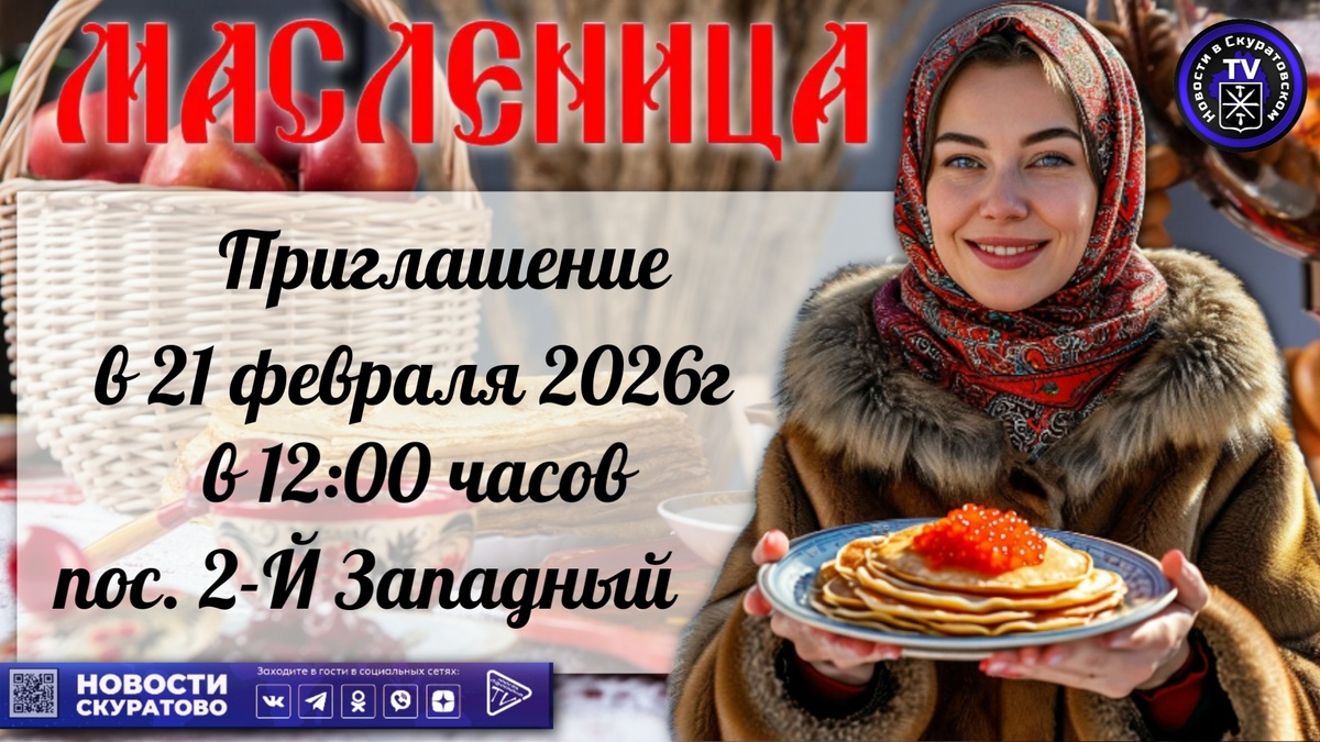 Уважаемые Скуратова ! Приглашаем Вас на Масленичные гулянияМероприятия состоятся: Парк пос. 2й Западный (ул. Пушкина/Маяковского) 21 февраля