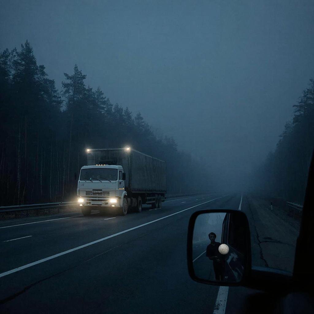 И может быть, именно поэтому дальнобойщики — самый суеверный народ на свете. Они крестятся, проезжая мимо определённых мест, никогда не садятся за руль без оберега и знают: если на пустой трассе в три часа ночи ты видишь в зеркало фары догоняющей тебя фуры, а на рации начинаются помехи — лучше прибавить газу и не оглядываться. Потому что тот, кто едет сзади, может вообще не иметь лица. Или не иметь номера. Или не иметь права существовать в этом мире.