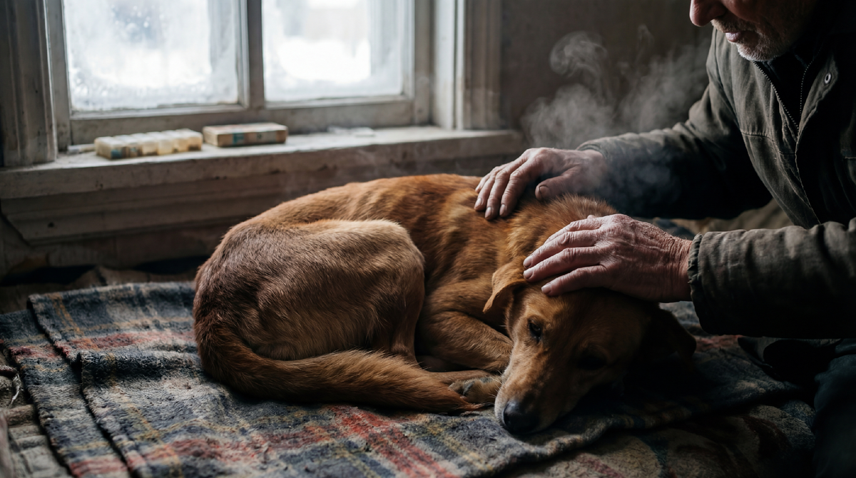Пахло дымом, смолой, живым теплом. Николай Петрович сидел у дивана, рядом с Шариком, и гладил его по рыжей голове. Пёс лежал тихо, только бок чуть приподнимался и опускался в такт дыханию.