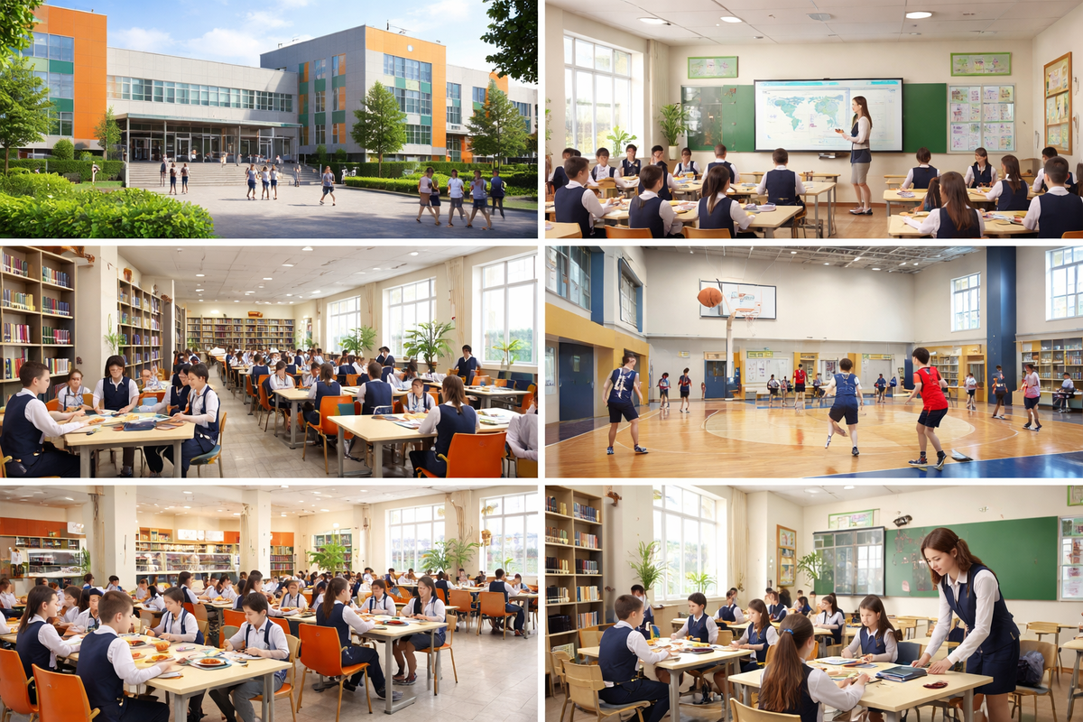 Когда входишь в здание — сразу ясно: это не просто школа. Здесь всё сверкает, пахнет краской, везде кабинеты с интерактивными досками. Учителя в костюмах, ребята в форме ходят строго.