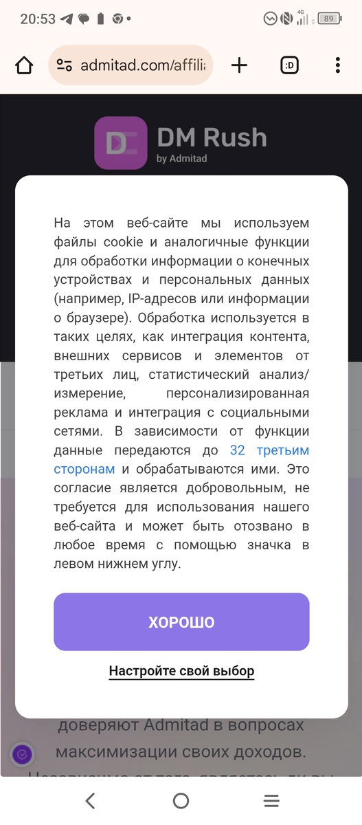 Для начала нужно перейти по ссылке и нажать кнопку "Хорошо". Что вы ознакомлены с файлами "cookie".