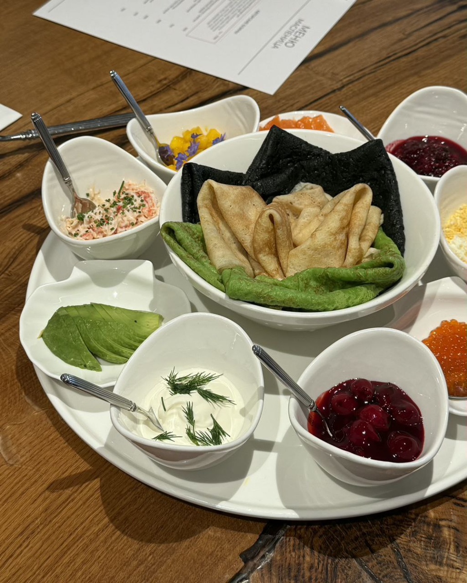 Объелась блинами без угрызений совести. Отличный повод на Масленицу устроить себе блинный марафон. Без «ой, я только один» и без «завтра на диету» И конечно, отправилась в любимую Atlantica на Кутузовском. Тут блины роскошные, не какое-то тесто на сковородке. Я бы это назвала гастрономическим спектаклем Знакомимся: блинный торт с красной икрой, отдельный вид счастья. Сделан из зож-блинов на основе кабачка и шпината, а вместо крема, нежный риет из красных рыб. Сверху: отборная икра и сливочный шампань-соус. Пока пишу, хочется уже повторить Черные блины с чернилами каракатицы, с авокадо, медово-горчичной заправкой и камчатским крабом. Плюс красная икра и сливочный биск. Вот такой блин, я бы повторяла на завтрак каждый день Блинный пирог с угрем и треской, с терияки и дополнительно опаленным угрем сверху. Соус нежнейший, почти тает раньше, чем ты успеваешь отрезать кусочек Для любителей мяса: блины с томленой говядиной и белыми грибами, с соусом бешамель. Глубоко, сытно, тоже тают во