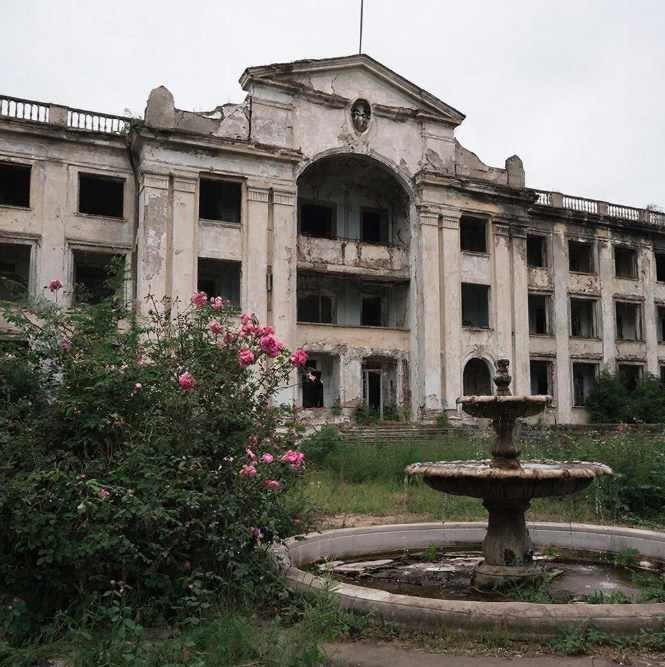 Король среди мертвецов. Главный корпус — шедевр сталинского ампира. Колонны, барельефы, широкая лестница. Внутри когда-то был фонтан, сейчас — груда мусора. В вестибюле валяются кресла с вырванной обивкой. На втором этаже — бывшие номера люкс с остатками лепнины на потолке. Говорят, здесь до сих пор работает лифт. Но я бы не рискнул на нём кататься.