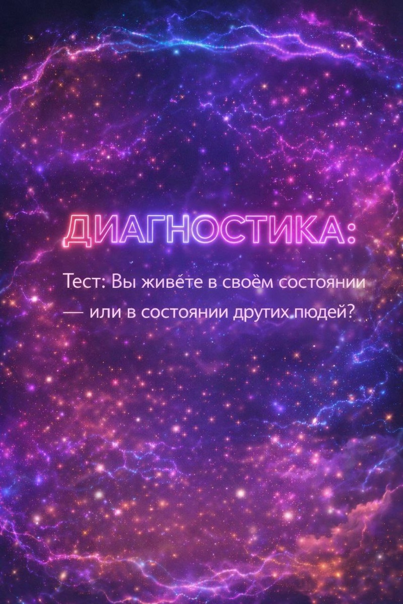 🔤 Тест: вы живёте в своём состоянии или в состоянии других людей? Ответьте себе на следующие вопросы, не для меня, а для себя и Отметьте + "плюс", если это про вас и - "минус", если к Вам не относится, не думайте, сразу мгновенные ответы в 1 секунду: ✅Вы заходите в помещение и сразу чувствуете атмосферу. ✅ Если кому-то плохо — вам тоже становится тяжело. ✅ После общения с определёнными людьми вы чувствуете усталость, даже если «ничего не произошло». ✅ Вы часто прокручиваете разговоры в голове и думаете: «Надо было сказать иначе…» ✅ Если рядом кто-то раздражён, вы автоматически начинаете подстраиваться. ✅ Вы можете быть в хорошем настроении, но один чужой комментарий или критика и вас словно выключили. ✅ Вы часто чувствуете непонятную Вину, даже когда объективно ничего плохого не сделали. ✅ Вам сложно отстоять себя, потому что «не хочется быть плохой». ✅ Вы замечаете, что живёте в напряжении, даже когда внешне всё спокойно. Если у вас 3 и больше совпадений или иначе плюсов, т