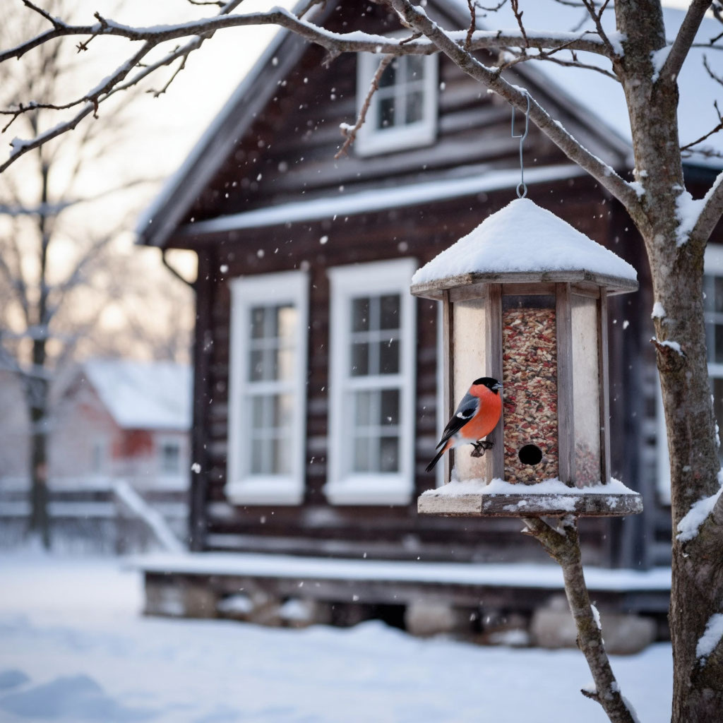 Готовлю завтрак для зимующих птиц: крошу хлеб мелко, почти с благоговением, режу немного сальца — как символ земной заботы, — добавляю семян, собранных ещё с осени, когда солнце было щедрым. Кормушки* сделала заранее — большие и удобные, с покатыми крышами, чтобы снег скатывался, не закрывая вход. Для маленьких синичек — особые: с узким лазом, словно вход в тайную дверь, куда не проникнет никто, кроме них. Иначе большие птицы всё яростно сметут — такова суровая правда природы, где даже доброта должна быть мудрой.