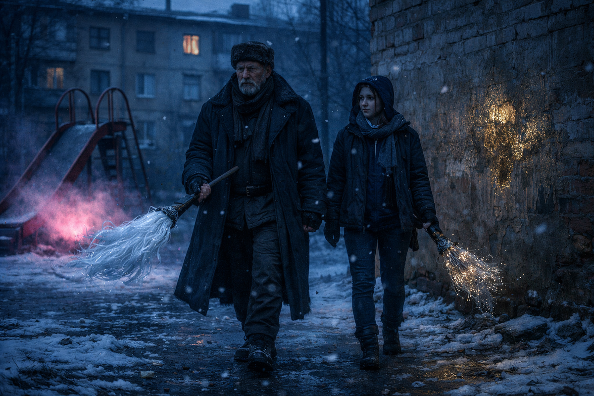Наташа, едва поспевая за его широким, неспешным шагом, кивнула. Ее собственная метла — еще неловкая в руках, плетение ветра в ее древке местами колючее и неровное — нервно подрагивала, улавливая фантомные токи. Она была ученицей всего полгода, и каждый выезд на рейд был для нее откровением. Для Еремея — рутиной.