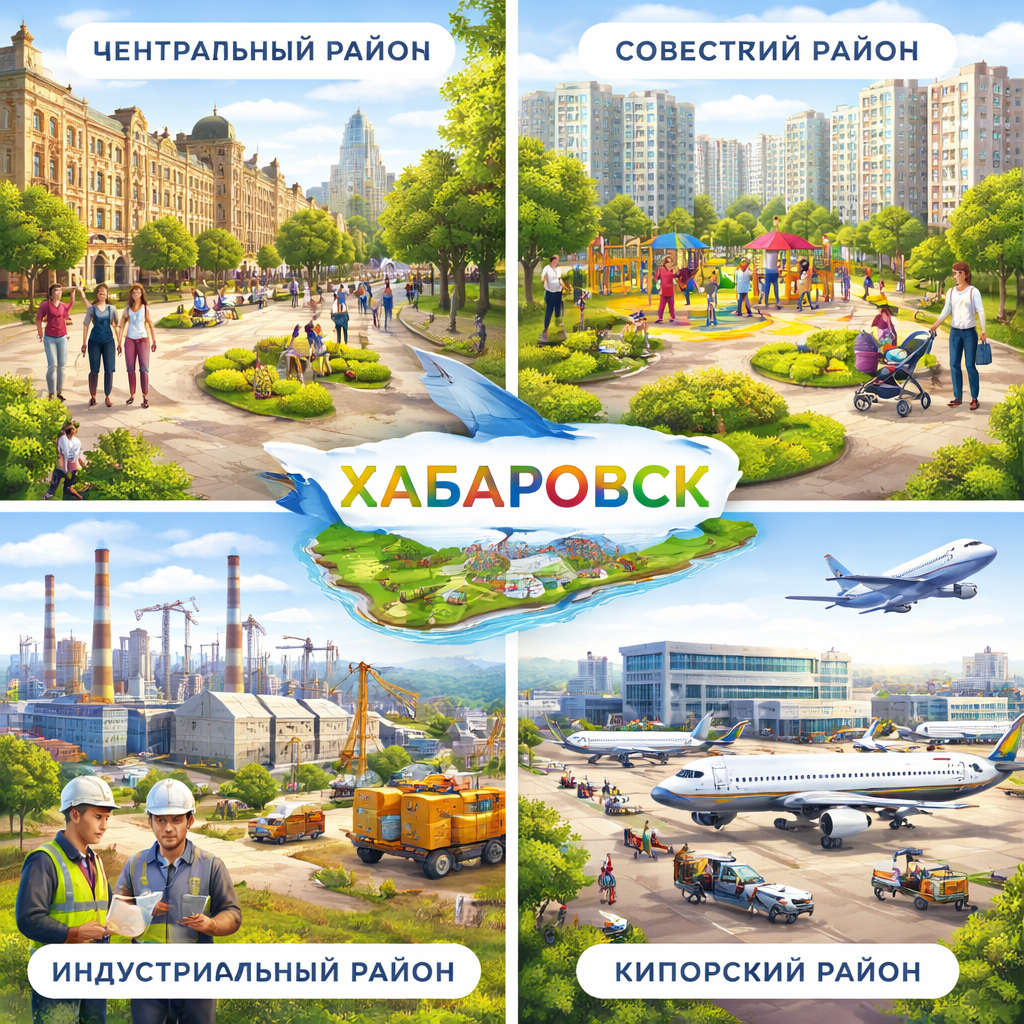 Город состоит из районов. От того, в каком районе ты живёшь, зависит твоя жизнь. Время в дороге на работу, соседи рядом, шум, спокойствие, цена квартиры. В Хабаровске четыре главных района — каждый со своей душой. Один для богатых, один для семей, один для работяг, один для путешественников. Я разобрался, где живут люди и почему. Границы: Амурская, Волохова, Серышева | Население: 80 тыс. | Цена кв-ры: От 600 тыс. за комнату Центр города. Амурская улица, парки, красивые дома. Здесь живут люди с деньгами, офисные работники, студенты из хороших семей. Почему люди ходят сюда: ✨ Красиво. Деревья везде, парки, набережная Амура видно. Гулять по улицам — удовольствие. ✨ Всё рядом. Кафе, рестораны, магазины, банки — всё в пяти минутах ходьбы. ✨ Транспорт. Трамвай, автобусы, маршрутки — везде ходят. До дома 10 минут. ✨ Культура. Театры, музеи, выставки. По вечерам ходят концерты. ✨ Люди. Встречаешь интеллигентных людей, студентов, художников, бизнесменов. Минусы: ⚠️ Дорого. Квартира в центре ст