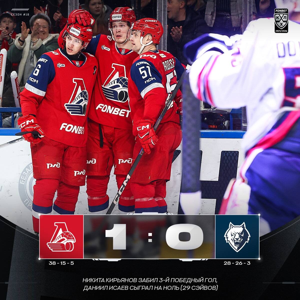 🚂 Гол Кирьянова и 29 сэйвов Исаева принесли «Локомотиву» победу над «Нефтехимиком»!
