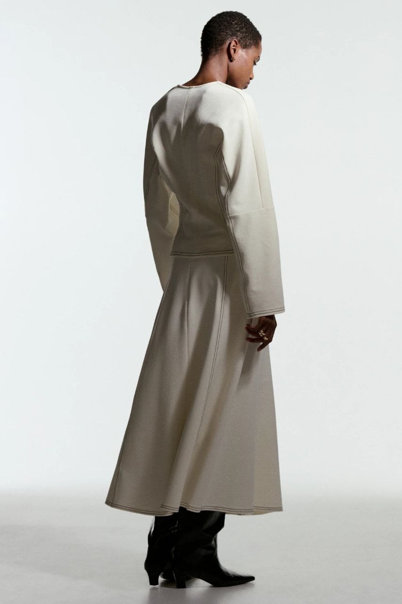 Из рубрики " Что сшить из ... " трикотажа Интересный и удобный костюмчик из плотного трикотажа с контрастной отстрочкой по всем швам. ✅ V-образный вырез горловины ✅Рукав: Цельнокроеный , состоящий из двух частей, где верхняя часть также разделена на две части, до локтя и после. Рукав широкий . ✅ рельефы, создающие эффект подкройного бочка. ✅Рельефы доходят до нижнего среза ✅Приталивание за счёт вытачек. ✅Средний шов на полочке и на спинке с вытачкой. ✅ Юбка длинная до щиколотки с расширением клиньев по низу на 5 см . Также присутствует средний шов на переднем и заднем полотнище. ✅ Ось вытачек отведена близко к боковому шву. ✅ По этим осям проходят рельефы. Нарисовала моделирование трикотажного костюма на быструю руку.. в программе САПР Валентина - Seamly2d. Это упрощенные варианты. В первом варианте подкройной бочок и нижняя часть рукава представляют собой одну деталь. Я там шва не вижу. Есть еще один ( не один) вариант с созданием двух деталей и со швом между подкройным бочком и