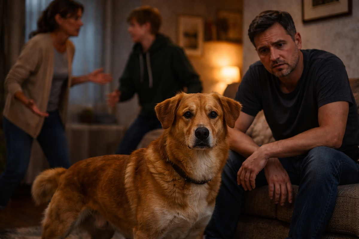 — Не странно, — сказал я. — Пёс живёт с вами четыре года. Каждый день видит, как папа приходит, как садится, как вздыхает. Видит, когда он молчит, хотя ему хочется сказать. Видит, когда вы на него вдвоём говорите — ты с одной стороны, мама с другой. И вот в какой-то момент он видит: этот “самый сильный” человек впервые честно сказал “я не вывожу”. Для собаки это сигнал тревоги: лидер стаи на грани. И он делает то, что умеет — встаёт между ним и источником давления.