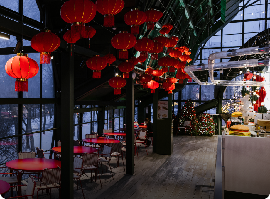 С 17 февраля по 1 марта на фуд-корте павильона «Фабрика подарков» действует специальное меню к Китайскому Новому году. Это хороший повод заглянуть сюда после прогулки по центру или мастер-классов и попробовать что-то новое. В корнере «Новые русские пельмени» знакомые вкусы получают новое звучание. Китайские блины цзянбин подают с курицей и зеленью, а жареные пельмени — с соусом терияки. Они тёплые, сочные, с лёгкой сладостью. К ним хорошо подходит китайский чай пуэр — насыщенный, с глубоким вкусом. В Currywurst делают ставку на более сытные блюда. Свиная рулька, запечённая в соевом соусе с мёдом, получается мягкой и ароматной. Грудинка в кисло-сладком соусе с капустой остаётся нежной и сочной. На десерт — печенье с предсказанием. К напиткам подают китайский чай: улун, пуэр или габа. Есть и какао «Мандариновый дракон» — это тёплый напиток с яркими цитрусовыми нотами. В корнере «Московского чаепития» сочетаются восточные и европейские традиции. Здесь готовят авторские купажи: «Заря над М