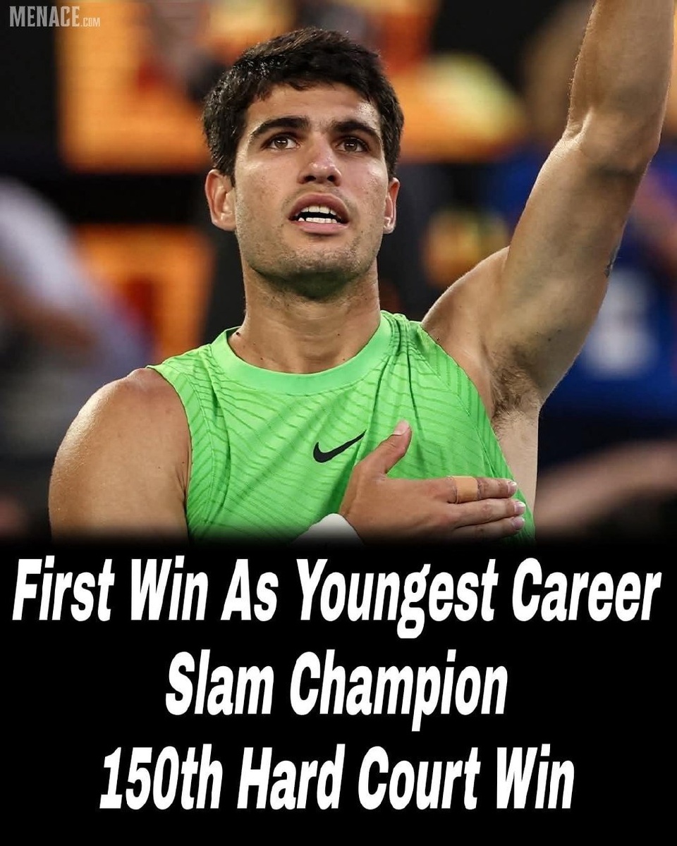 Карлос Алькарас празднует первую победу в статусе самого молодого обладателя карьерного Большого шлема и 150-ю победу на харде 💪