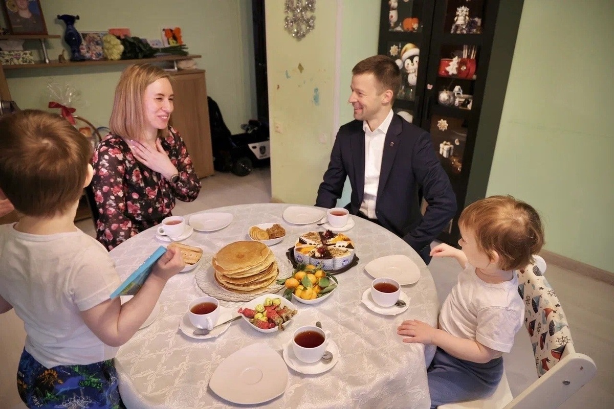 Глава Балашихи Сергей Юров вместе с "Молодой Гвардией" испек блины и передал их семье погибшего в СВО Алексея Исаева