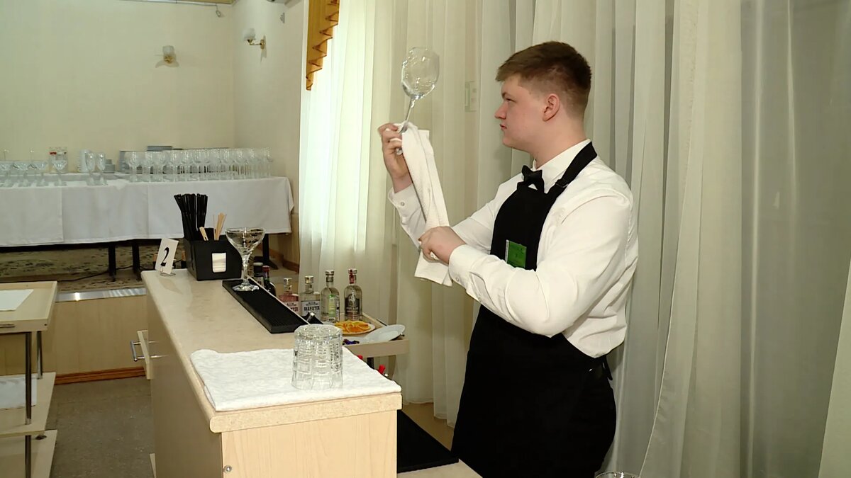 Конкурсные испытания всероссийского чемпионата «Профессионалы» проходят в городе. Учащиеся севастопольских колледжей соревнуются в трех компетенциях: «Ресторанный сервис», «Кондитерское дело» и «Хлебопечение». Какие задания выполняют участники и что оценивают эксперты, расскажет Анастасия Нестерова. Встреча гостей, прием заказов и подача блюд. Среди заданий компетенции «Ресторанный сервис»: оформление фруктовых тарелок, составление композиции из тридцати по-разному сложенных салфеток. На это дается всего 15 минут. А еще банкетное обслуживание и работа за стойкой. «Я занимаюсь созданием коктейлей для экспертного состава. Единственные подводные камни, которые мне встречались, это рассказывать истории, чтобы было интересно гостям. Можно забыть некоторые ингредиенты и перепутать напитки», — рассказал Тимофей Щеголь, участник чемпионата «Профессионалы». По словам экспертов, конкурсанты справляются на «отлично», ошибки в основном не критичные. «Ребята молодые, неуверенные в себе и все вот та