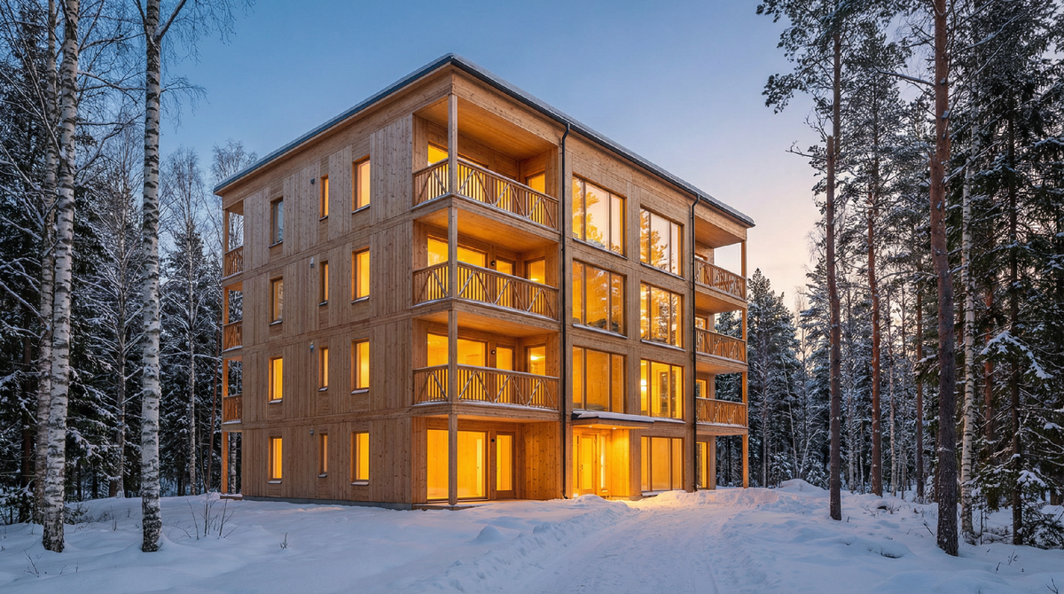 Представьте на секунду: вы открываете окно своей квартиры на пятом этаже, вдыхаете — и чувствуете запах живого дерева. Не освежителя воздуха «Сосновый бор», не свечки из IKEA, а настоящей древесины, из которой сложены стены вашего дома. Это не скандинавская утопия и не рекламный буклет. Это — Россия, январь 2026 года.