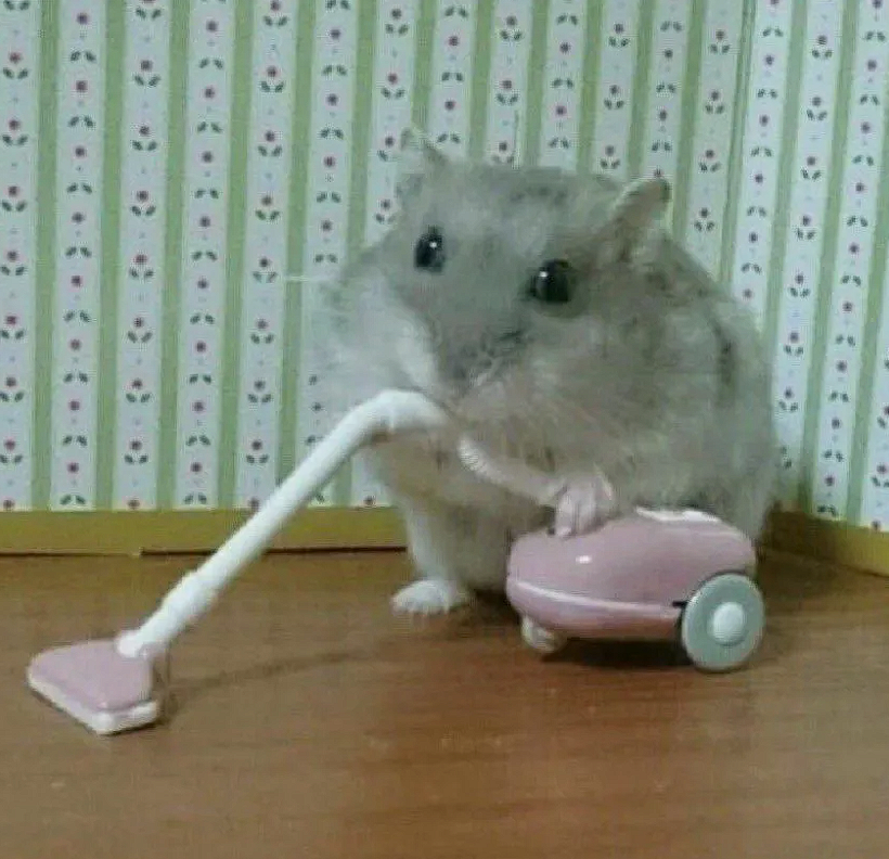 Хомяки очень чистоплотны и обычно выбирают один угол для туалета. Убирать его нужно ежедневно. Основной наполнитель меняется раз в 5-7 дней. Хомяки делают запасы еды — проверяйте кладовые раз в неделю и удаляйте портящиеся продукты, но не трогайте зерновые запасы полностью, чтобы не травмировать зверька.
