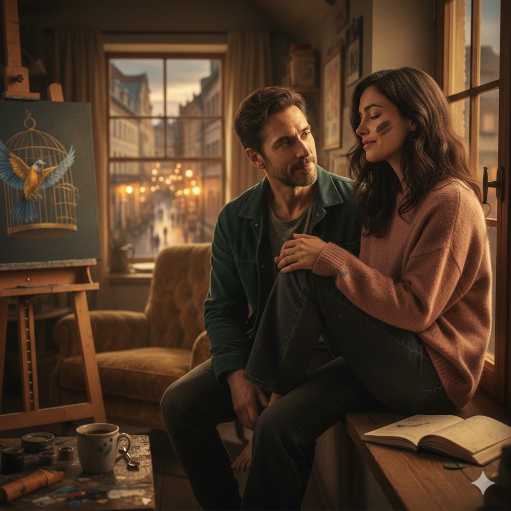 Вечером того же дня Елена сидела на подоконнике в мастерской Марка. Город внизу зажигал огни, похожие на россыпь янтаря. Марк дописывал портрет — не ее лица, а ее рук, которые теперь не сжимались в кулаки, а расслабленно лежали на коленях.