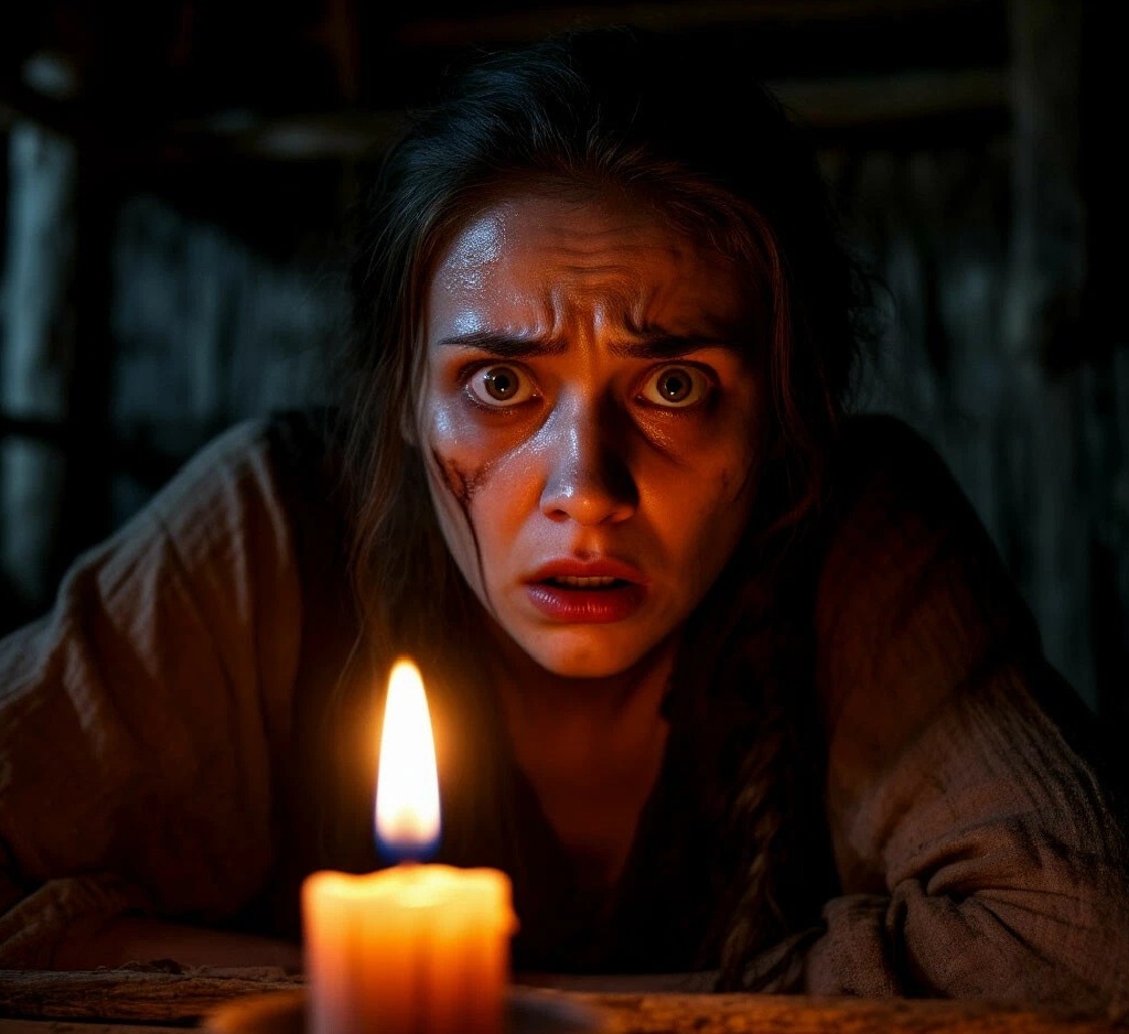 Старуха склонилась над столом, и пламя свечи заметалось, заплясало, отбрасывая на стены чудовищные тени. Губы её зашевелились, зашептали что-то неразборчивое, гортанное.