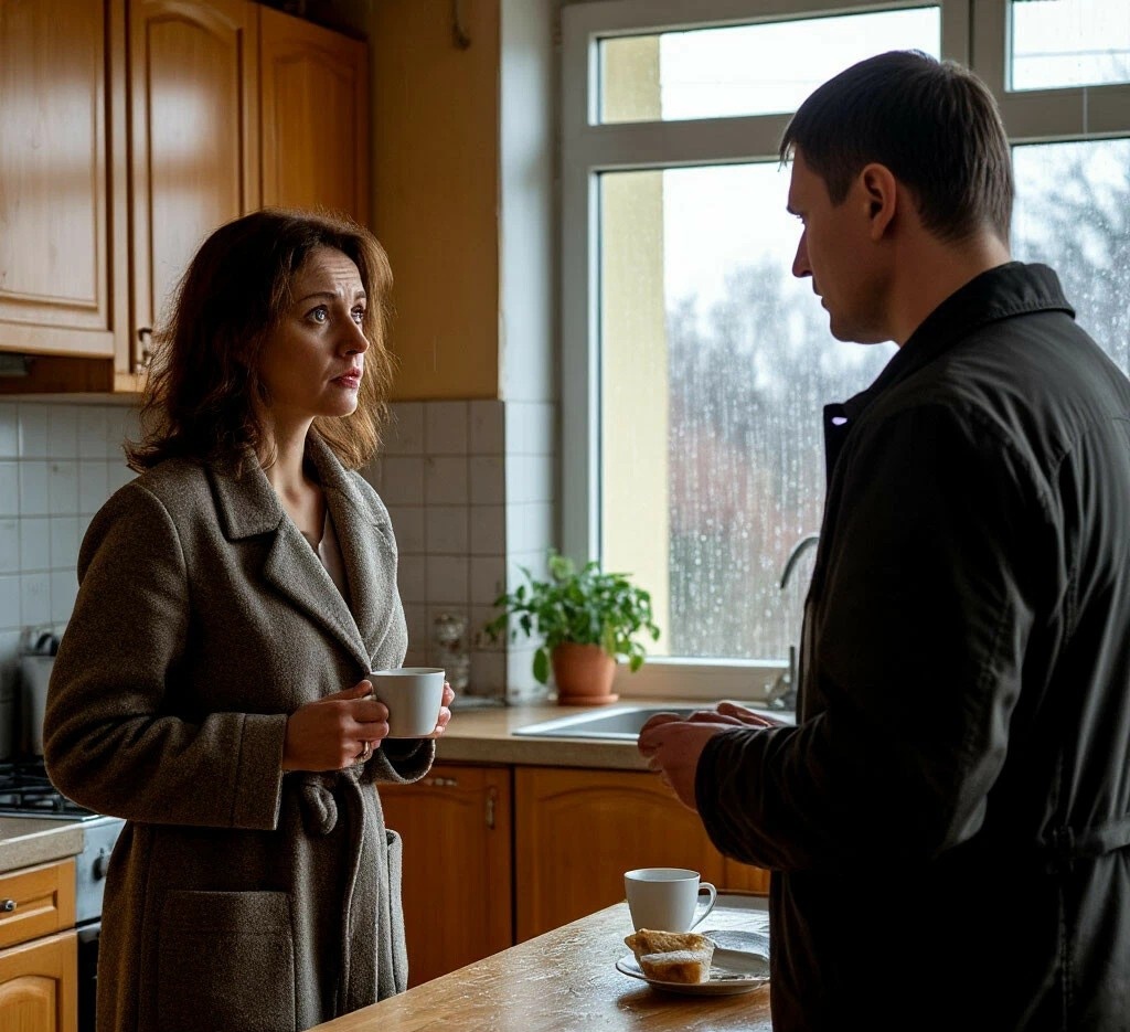 На кухне меня ждал сюрприз. Сергей стоял у плиты в моём фартуке в цветочек и выглядел непривычно суетливым. Он уже нарезал бутерброды и налил две кружки кофе.