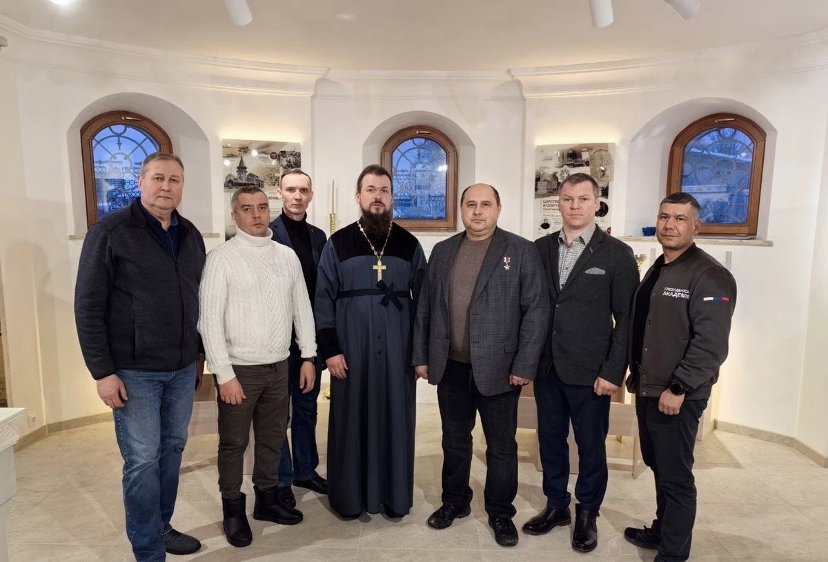 12 февраля 2026 года участники регионального проекта «Герои земли Псковской» и федеральной программы «Время героев» вместе с главой Дновского муниципального округа Владимиром Цветковым посетили храм святых Царственных страстотерпцев города Дно, где побеседовали с настоятелем храма Архангела Михаила города Дно протоиереем Сергием Андреевым.