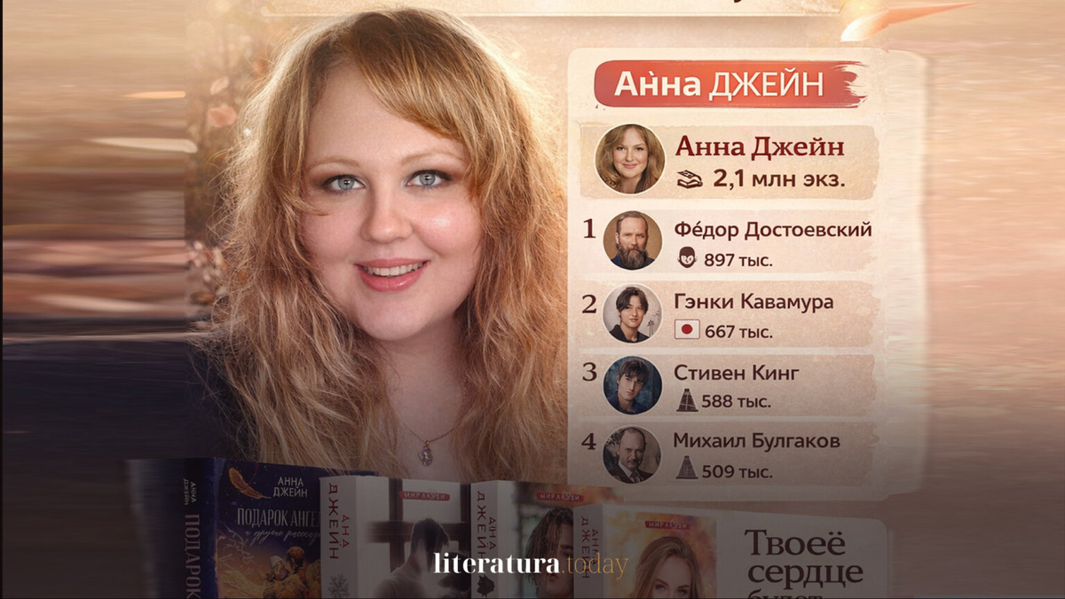 По итогам 2025 года самой издаваемой писательницей в России стала Анна Джейн (настоящее имя — Анна Потапкина), уроженка Красноярска. Общий тираж её книг за год составил 2,1 млн экземпляров, сообщают данные Российская книжная палата. Анны Джейн не стало в 2023 году, но её проза, прежде всего в жанре Young Adult, продолжает уверенно удерживать лидирующие позиции на книжном рынке. Её главный успех последних лет — роман Твоё сердце будет разбито, который занял третье место в списке самых издаваемых российских авторов: за 2025 год продано 284 тыс. экземпляров. Рейтинг авторов 2025 года