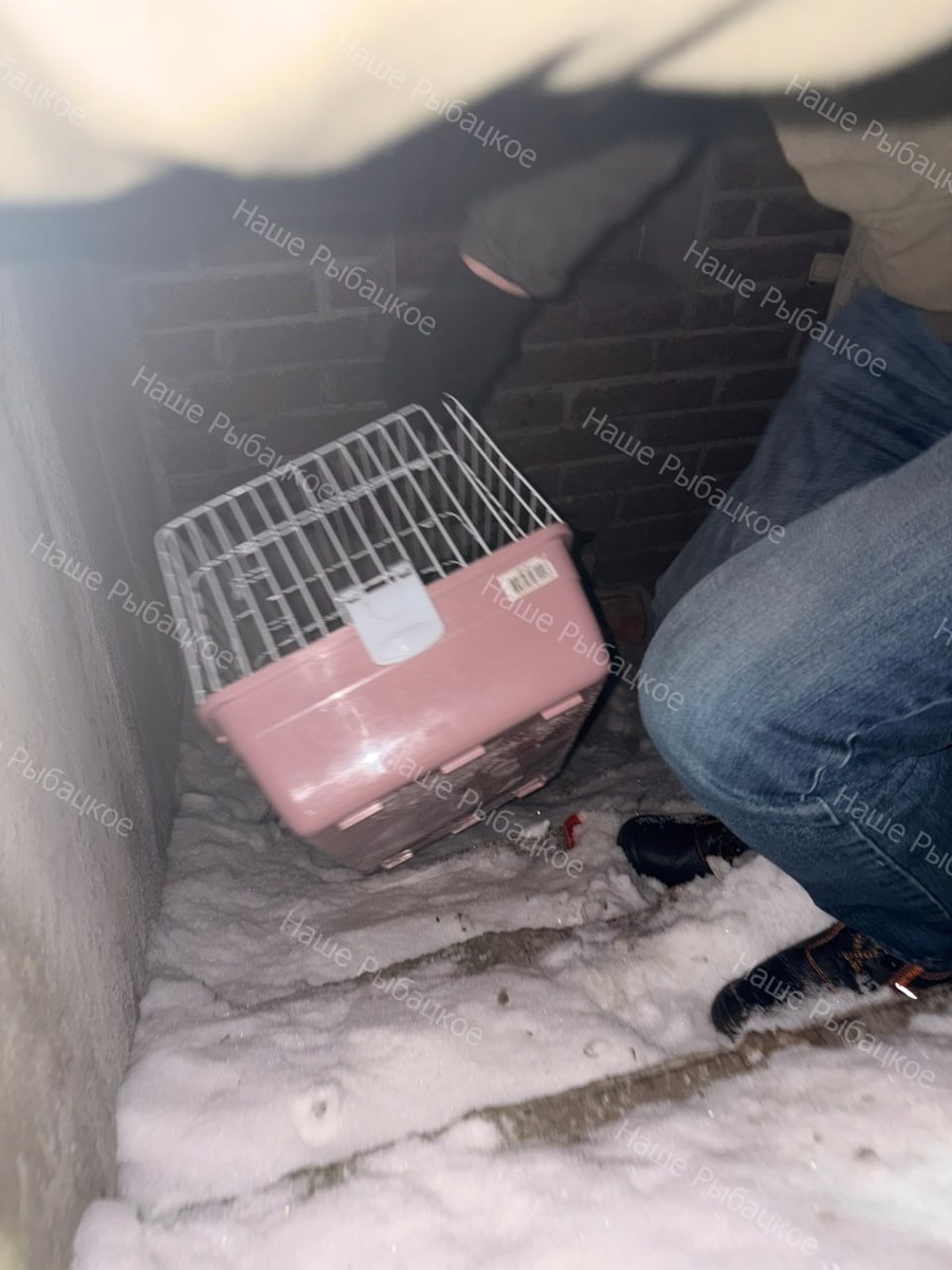 На Рыбацком проспекте, 17, подвал неожиданно обзавёлся «экспонатом»: прохожая с собакой случайно обнаружила в тёмном углу переноску, внутри