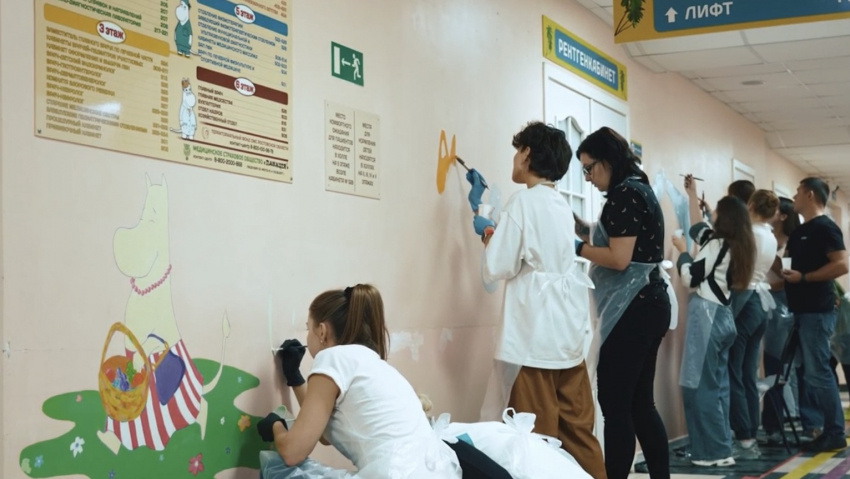 В Батайске волонтеры разрисовали детскую поликлинику.