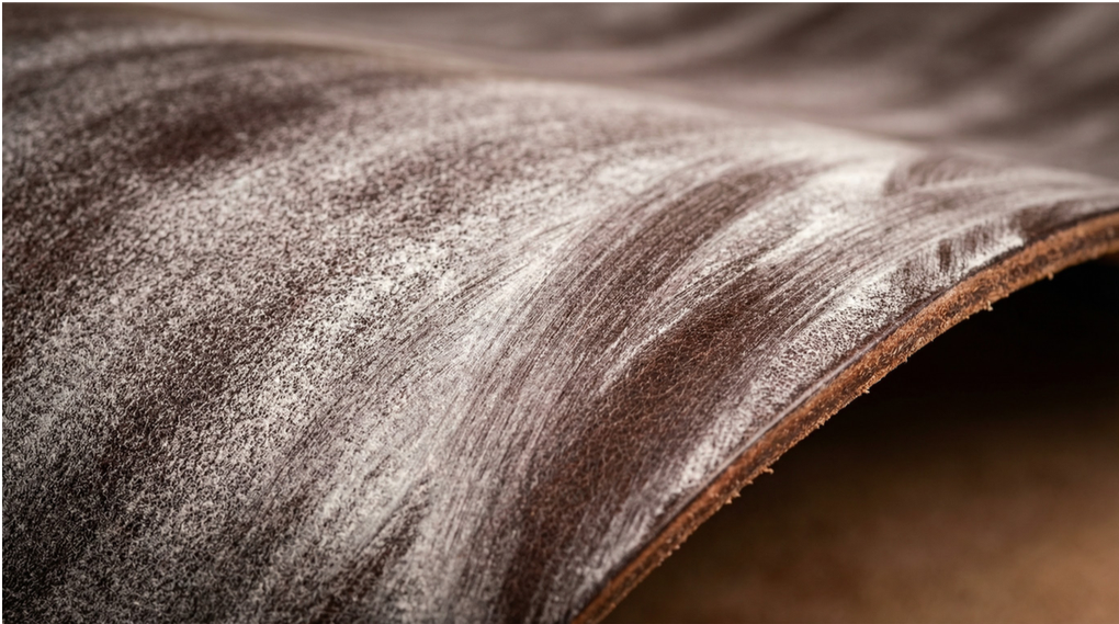 Ключевой этап, отличающий English Bridle от многих других кож — это «hot stuffing». После дубления и окрашивания в барабанах (для глубокого и равномерного цвета) кожу пропитывают горячей смесью натуральных масел и восков. Эта процедура проводится с обеих сторон — и с лицевой (grain), и с изнаночной (flesh). Именно она придает коже ту самую знаменитую прочность, водостойкость и характерное «восковое» ощущение. На поверхности новой кожи часто можно заметить легкий белый налет — это излишки натурального воска, которые легко убираются тканью и служат показателем качества.
