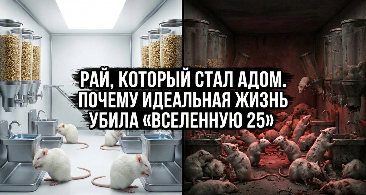 Представьте мир без голода. Хищники отсутствуют. Болезни побеждены. Температура всегда комфортная (+20 °C), а жилищный вопрос решен раз и навсегда. Звучит как недостижимая мечта человечества. Но в 1968 году американский этолог Джон Кэлхун воплотил эту утопию в реальность. Правда сделал он это не для людей. Жителями рая стали мыши.