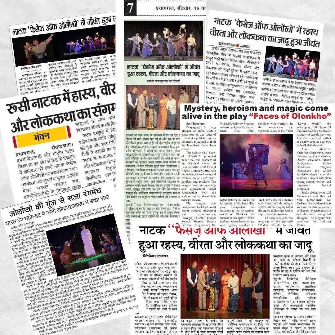 , как о настоящих звездах Болливуда! 😍🌟🇮🇳 📝Вот, что они писали: ✨Об атмосфере: «Стирание границ» Индийские журналисты были поражены тем, как глубоко российская постановка резонировала с местным зрителем. «В этот вечер на сцене фестиваля "Бхарат Ранг Махотсав" казалось, что все мировые границы исчезли, и на одной площадке воплотился живой облик глобальной культуры». 🎤О магии звука и визуала: «Неземное измерение» Особое внимание пресса уделила этническим элементам, которые создали эффект полного погружения. «Символические звуки Мирового древа, мистический резонанс хомуса и уникальный стиль горлового пения наполнили зал атмосферой иного мира. Это было не просто представление, а путешествие в магическую вселенную, где музыка и свет удерживали зрителей в оцепенении до последнего вздоха». 🌹О силе образов: «Женщины-воительницы и дух Олонхо» Пресса выделила мощный феминистический и героический посыл спектакля. «Зрители увидели мир древнего эпоса Саха, где женщины-героини сражаются