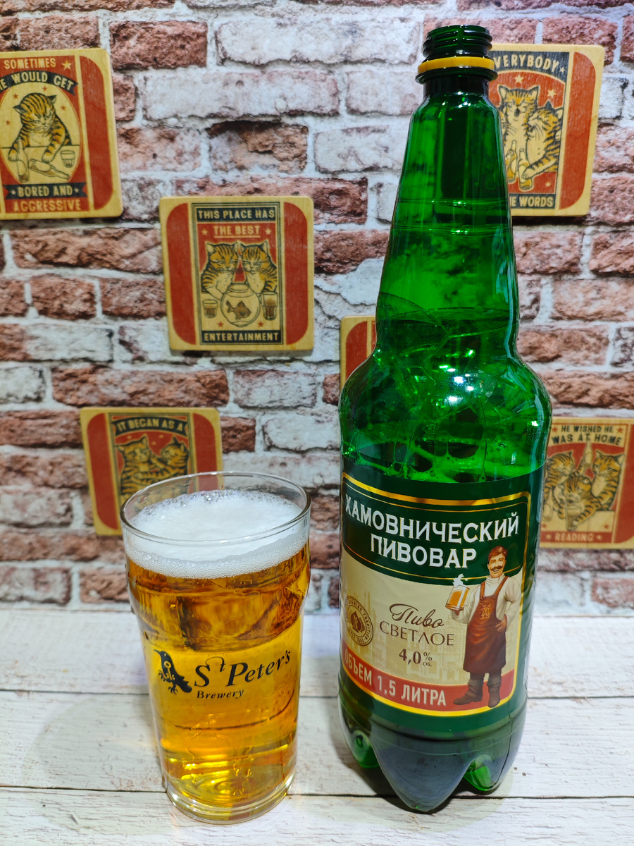 Сварило это пиво ЗАО "Московская Пивоваренная Компания" в г. Мытищи Московской области. На сколько я могу судить по отзывам на UNTAPPD, пиво Хамовнический Пивовар появилось в конце лета 2025 года. До недавнего времени я про него не знал, не слышал и нигде его не видел. Пиво продаётся только в ПЭТ объёмом 1.5л. Старнновато, ведь те же Мотор и Кружечка чешского разливаются и в ПЭТ, и ж/б. На сайте пивоварни этого пива на данный момент не появилось, так что без описания (на UNTAPPD его, то есть описания, тоже нет). ********************************************************************************** Плотность: 10%. Состав: вода питьевая, солод пивоваренный ячменный, хмелепродукты. Срок годности: 5 месяцев с хранением при температуре от 2℃ до +25℃. С даты розлива моей бутылки прошло 8 суток. СвежачОк!!! ********************************************************************************** Пена присутствует, но шустро растворяется, задержавшись не на долго жалкими крохами. Ароматика на старте оче