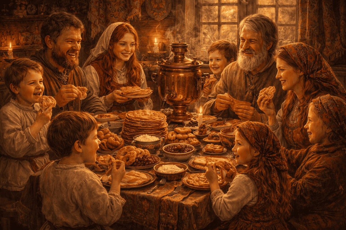 Фото: сгенерировано ИИ/НДН.инфо В этот день ходили в гости, обменивались подарками и особенно баловали детей — их угощали блинами и рыбными пирогами. На стол обязательно ставили самовар или чайник с ароматным чаем, а блины подавали с самыми разными начинками: вареньем, творогом, сыром, фруктами. Мясо оставалось под запретом — приближается Великий пост. Главным событием среды был визит зятя к тёще. Для него накрывали богатый стол с солёными и сладкими блинами. Считалось: если зять налегает на сладкое — характер у него мягкий, а если выбирает солёное — тёще придется быть настороже. Ранее мы писали о том, как выбрать лучшую муку для блинов. Прасковья Воскресенская