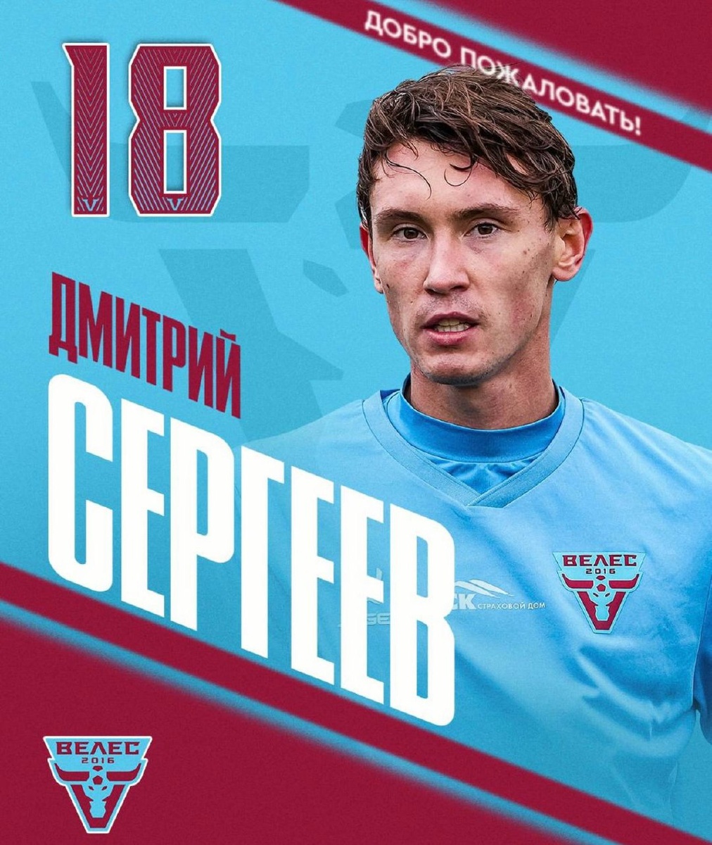 🚨 Полузащитник Тульского «Арсенала» Дмитрия Сергеева перешел на правах аренды, до конца текущего сезона в футбольный клуб «Велес».