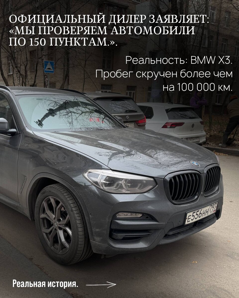 : «Мы проверяем автомобили по 150 пунктам.». Реальность: BMW X3. Пробег скручен более чем на 100 000 км. Что пошло не так? И кто не проверил. Листайте. Это реальная история. Если вам нужна честная проверка — напишите. 📱https://t.me/expert_morozov 📞 — 8 (915) 333-55-50 Лучше узнать правду до покупки, чем через три года.