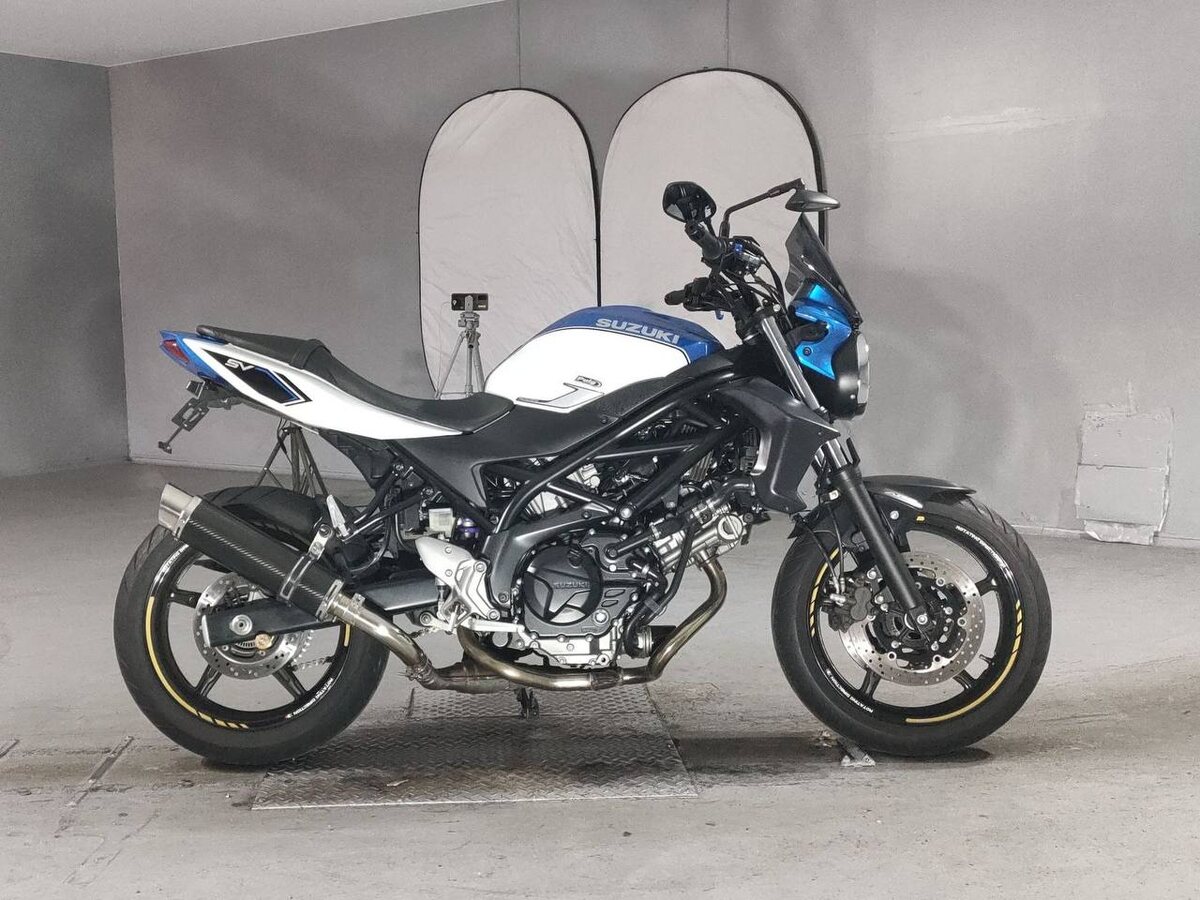 ⦁ Дата выпуска: 2018 ⦁ Пробег: 13 000 км 🔖 Описание ⦁ Тип двигателя: 4-тактный, жидкостного охлаждения, DOHC, 90° V-2-цилиндра. ⦁ Рабочий объём: 645 см³ ⦁ Мощность: около 75–76 л.с. (56 кВт) при примерно 8 500 об/мин ⦁ Максимальный крутящий момент: примерно 64 Н·м при ~6 800 об/мин ⦁ Коробка передач: 6-ступенчатая, постоянный зацеп ⦁ Сцепление: многодисковое в масляной ванне ⦁ Система подачи топлива: EFI с системой Suzuki Dual Throttle Valve (SDTV) для плавной и отзывчивой работы мотора ⦁ Данный V-твин-двигатель обеспечивает приятный характер тяги, хорошую «среднюю тягу» и лёгкость в управлении в городе 🔖 Шасси, подвеска и тормоза ⦁ Рама: стальная трубчатая «птичья клетка» ⦁ Передняя подвеска: телескопическая вилка (обычно нерегулируемая) ⦁ Задняя подвеска: моноамортизатор со связью и регулировкой предварительного натяга ⦁ Тормоза: ⦁ Спереди: двойные диски ~290 мм с 4-поршневыми суппортами и ABS ⦁ Сзади: одиночный диск ~240 мм с ABS ⦁ Колёса и шины: алюминиевые диски с шинами 120/7