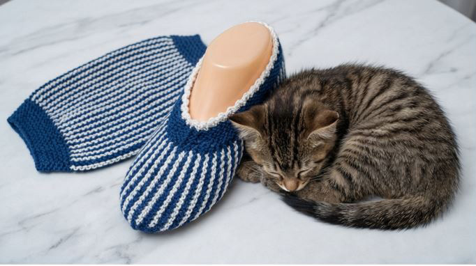 Следки вяжутся короткими рядами. Я вяжу поперёк стопы, поэтому сначала решаю, какую ширину следка хочу. Я люблю, когда следок сидит уверенно — обычно беру 20 см по полотну. Если плотность 24 п. = 10 см, значит 20 см = 48 петель, плюс 2 кромочные = 50 петель. Набираю 50 петель нитью цвета 1. Хвост оставляю длинный — он потом пригодится для сшивания. Вязание идёт платочной вязкой (все ряды лицевыми), но с короткими рядами и сменой цвета. Я пробовала оба: Я ниже дам схему рядов, а в процессе поясню, где подтягивать нить. Цвет 1: кром., 5 лиц.