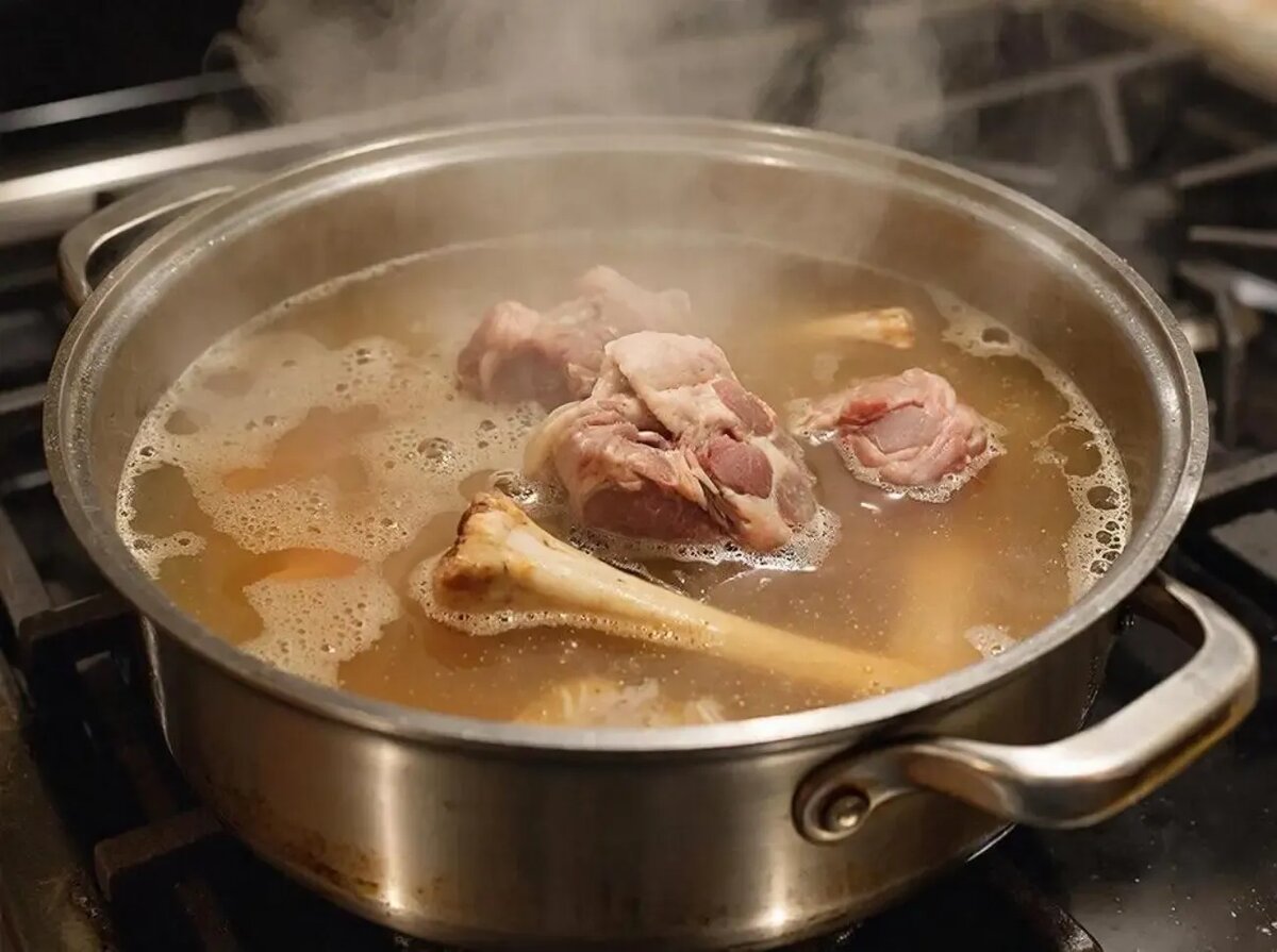 Профессиональные кулинары начинают приготовление бульона не с кастрюли, а с противня. Обжаривание костей при высокой температуре запускает химические процессы, которые формируют глубину вкуса и насыщенный аромат.