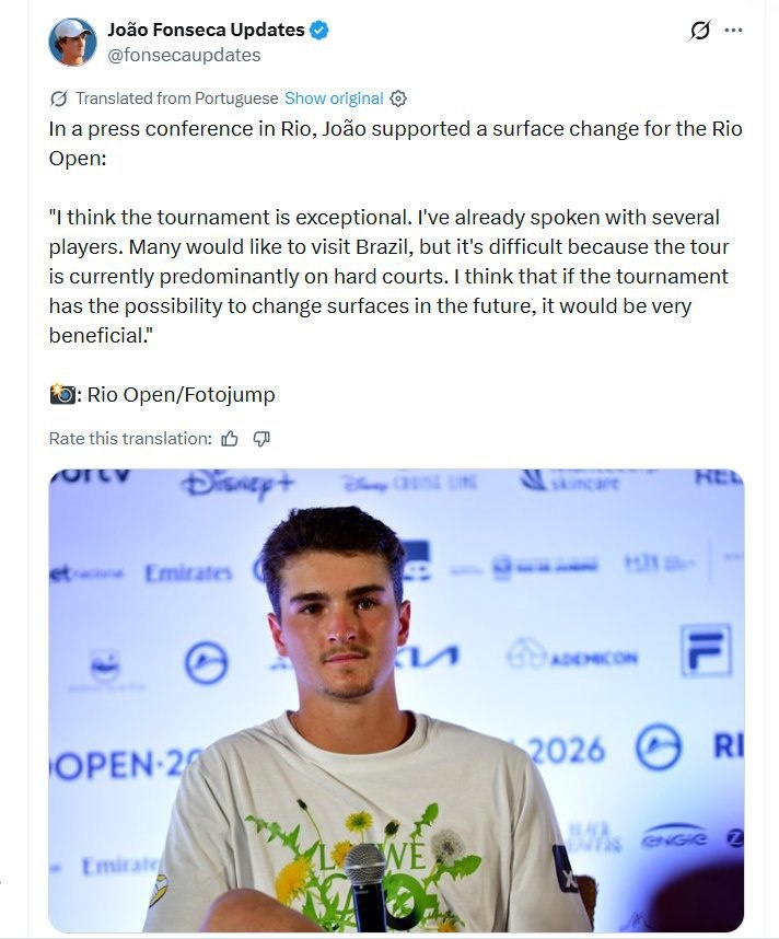 🎾 Фонсека поддержал смену покрытия турнира в Рио на хард, чтобы привлечь больше участников