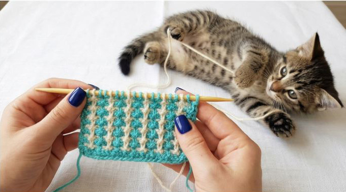 И самое приятное: узор двухсторонний, аккуратный, отлично подходит для шапок, варежек, жакетов, да хоть для тёплого шарфа. Плюс важный момент: он вяжется без кромочных петель — это удобно, если вы вяжете по кругу или хотите ровный край без “пляски” кромок. Этот двухцветный узор спицами только на первый взгляд выглядит сложным, хотя вяжется очень просто.