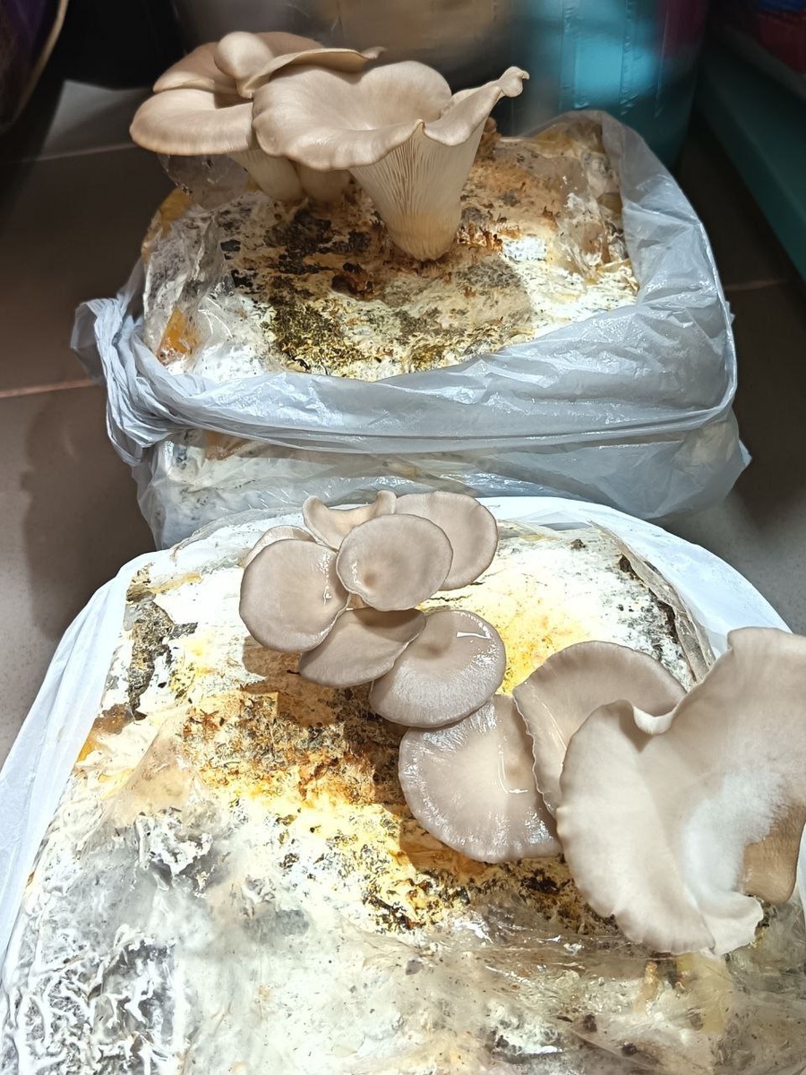🍄 И опять воля случая, что заметил плодовые тела. Блоки уже не единожды плодоносили, и я думал, что резерв исчерпан — просто валялись на полке. Хотел немного отломить субстрат с мицелием и дать недавно приобретённым мокрицам. Но тут плоды. Мицелиевая диета у изоподов откладывается на пару дней. Интересный факт: Вешенка - это хищный гриб, который питается не только целлюлозой и лигнином из мертвой древесины, но и охотится на мелких почвенных червей (нематод). Хищничество помогает грибу получать азот, необходимый для роста. Для охоты вешенка использует токсин, парализующий нематод за считанные минуты. Всем приятного аппетита 😋 #вешенка #грибы