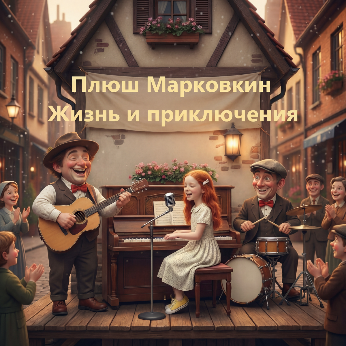 В течение нескольких недель Плюш усердно занимался. Он научился записывать свои мелодии, узнал, что такое диез и бемоль, понял, как составлять аккорды. Позже он даже поступил в музыкальную школу. Освоил игру на пианино и гитаре, научился правильно петь. Но это было потом, а сейчас, после визита к сентябрюшкиной бабушке, Плюш понял одну вещь. Ему необходимо было как можно скорее порадовать жителей городка своей музыкой.