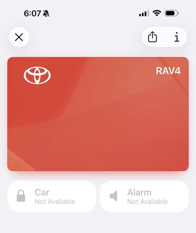 Японский автопроизводитель Toyota начал внедрять поддержку цифровых ключей Apple Wallet в свои автомобили — спустя пять лет после того, как Apple представила эту функцию. Как пишут на Reddit, владельцы отдельных комплектаций кроссовера RAV4 2026 модельного года в США уже могут добавить ключ от машины в приложение Wallet на iPhone или Apple Watch. Японцы реализовали функцию с использованием технологии Ultra Wideband, что позволяет открывать двери и заводить автомобиль вообще без каких-либо действий — достаточно просто подойти к машине с айфоном в кармане или часами на запястье. Правда, для такой магии понадобится iPhone 11 или новее, либо Apple Watch Series 6 и свежее. Более старые устройства тоже смогут работать с цифровым ключом, но придется доставать смартфон и прикладывать его к двери. Есть, впрочем, ложка дегтя: для использования цифровых ключей требуется подписка на сервис Toyota Remote Connect стоимостью от 15 долларов в месяц. При покупке нового автомобиля Toyota предоставляет