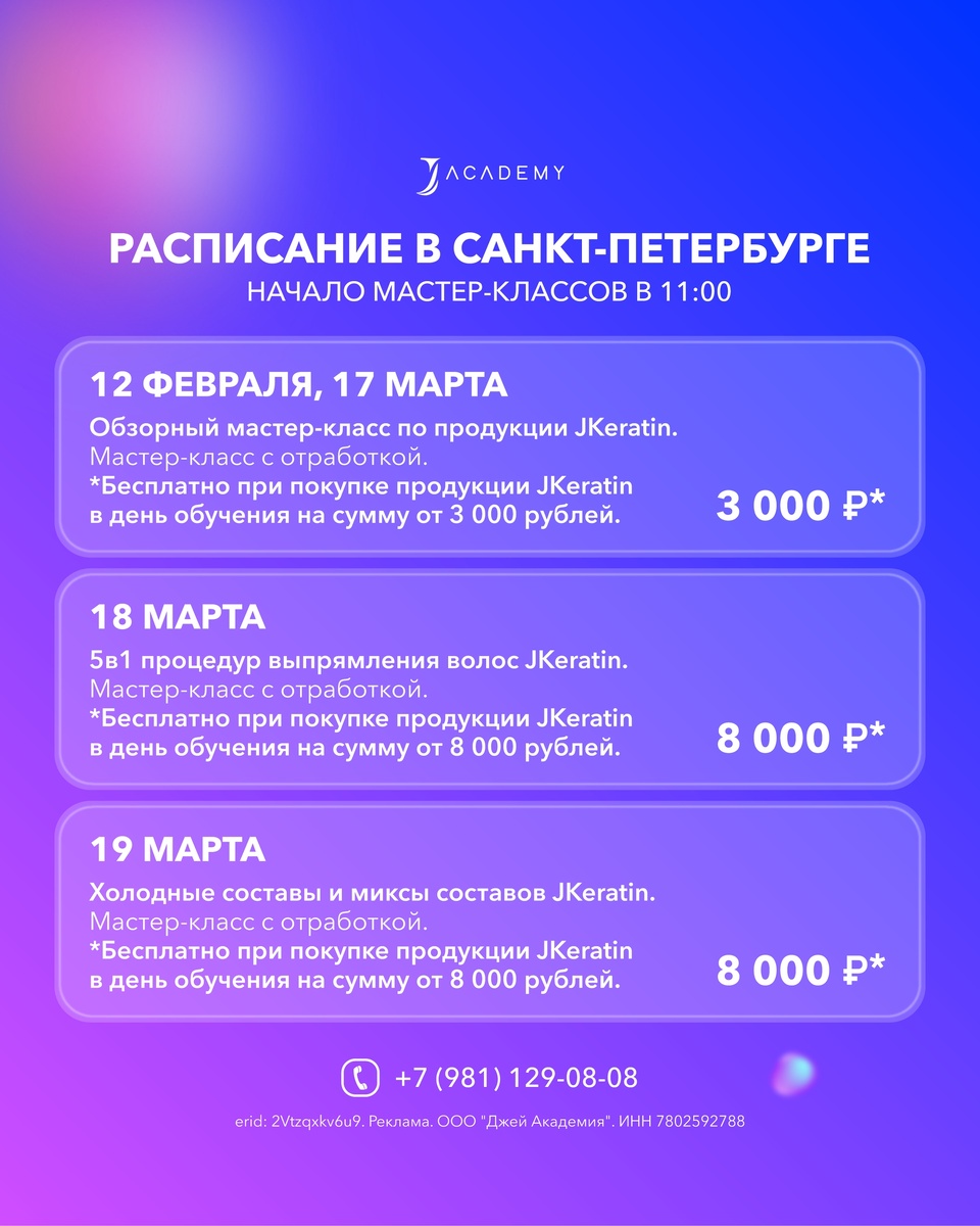 4 000 ₽ за один видеоурок или 10 000 ₽ за все 3 видеоурока. Технолог Мария Протасова. Очные занятия проходят по адресу: Санкт-Петербург, ул. Ивана Фомина, 14/2