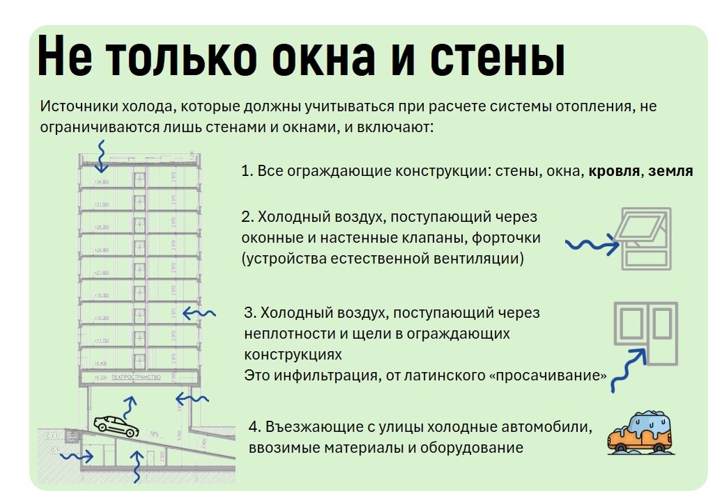 Это инфильтрация, от латинского «просачивание»; - Въезжающие с улицы холодные автомобили, ввозимые материалы и оборудование.